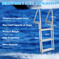 Garvee Removable Dock Ladder 3 Steps, Pontoon Boat Ladder with Anti-Corrosion 6063 Aluminum & Upgraded Widen Nonslip, 350lbs Marine Pontoon Boat Dock for Lake/Pool/Boarding/RV,Straight Ladder