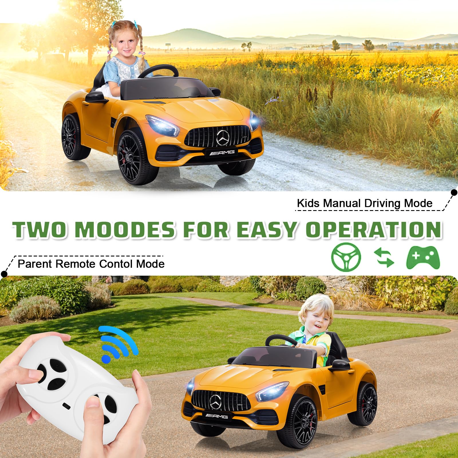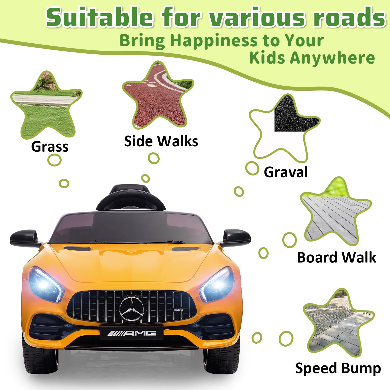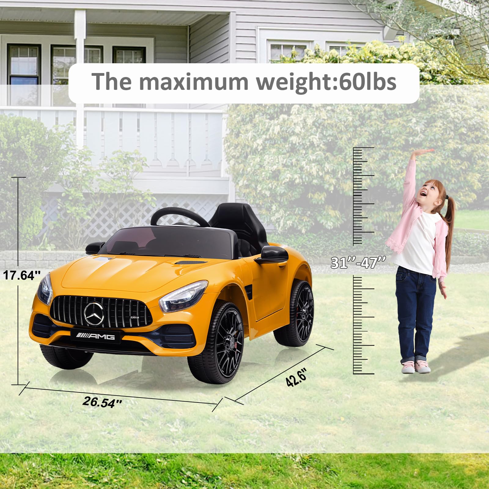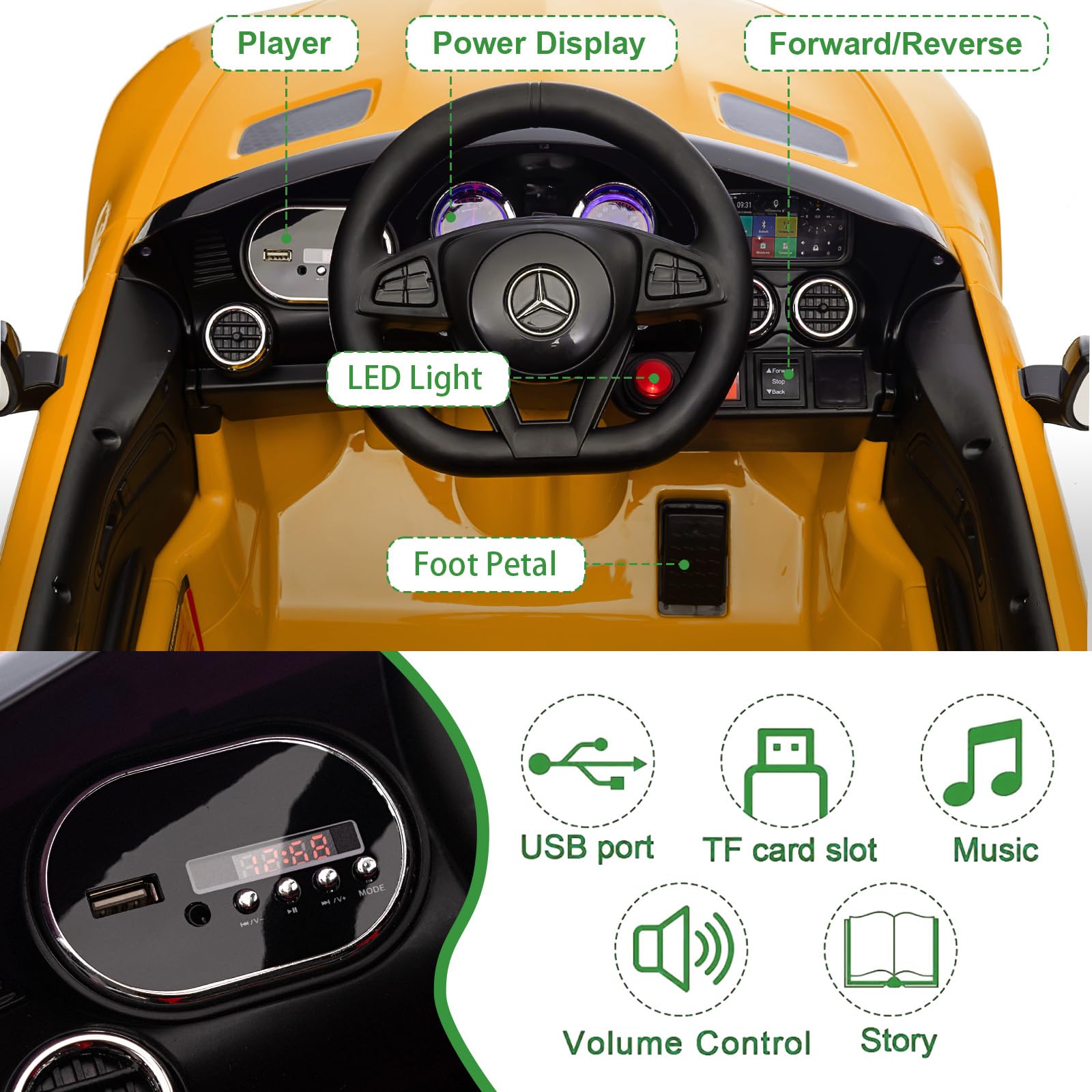 Garvee Ride Car for Kids, 12V Power Battery Electric Vehicles for 3-7 Toddlers, Licensed Mercedes-Benz with Remote Control, MP3 Player - Yellow