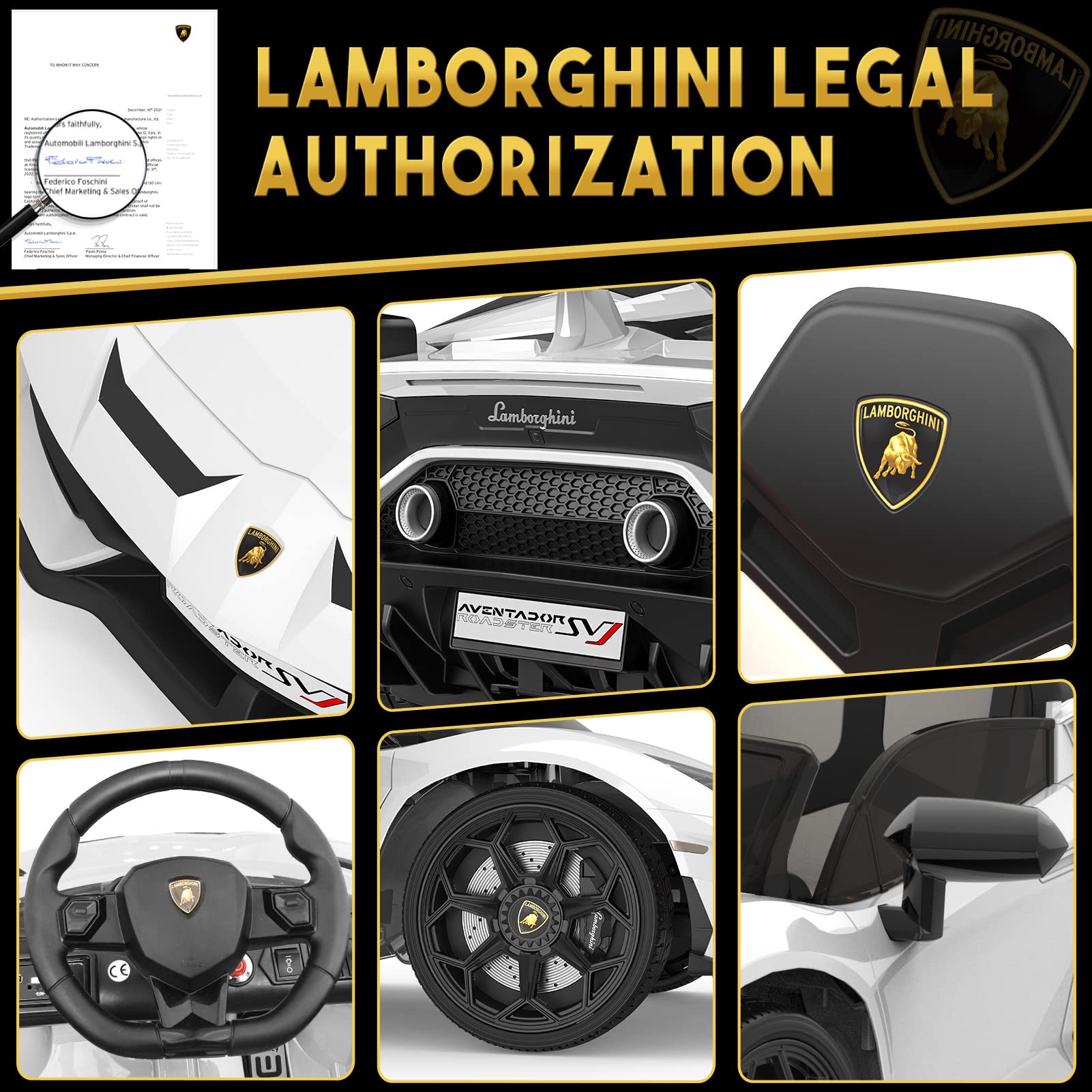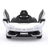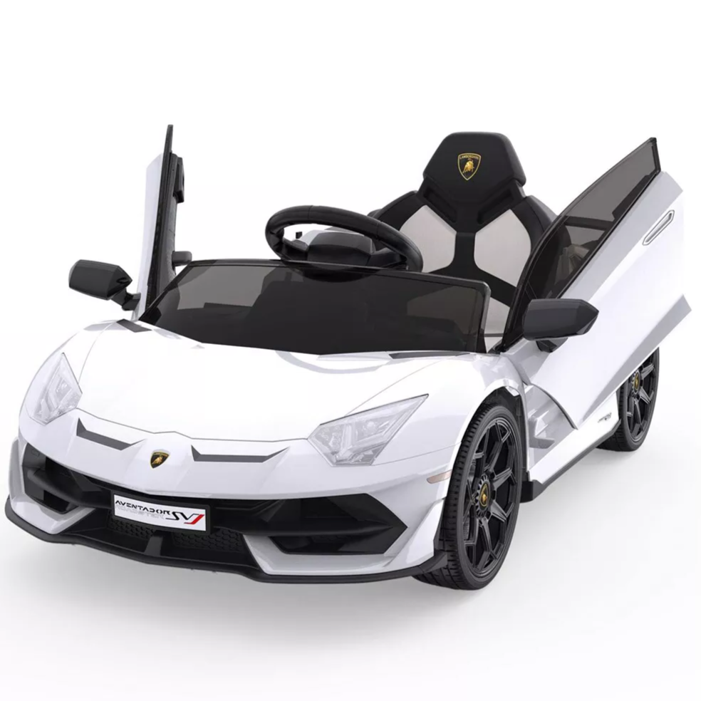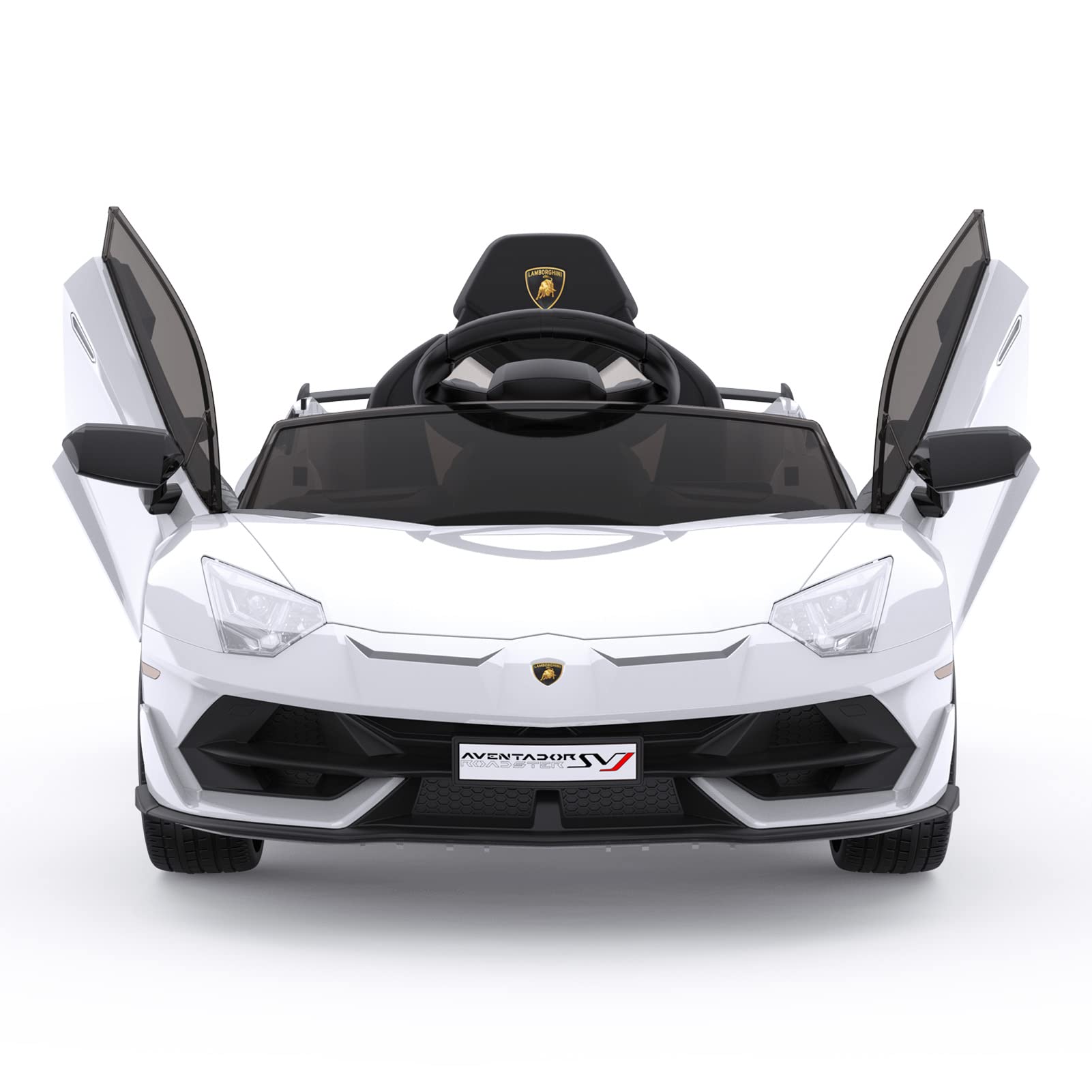 Garvee Ride P Series 12V Electric Ride-On Car for Kids | Licensed Lamborghini Battery-Powered Sports Car with Remote Control, 2 Speeds, Sound System, LED Headlights, Hydraulic Doors - White