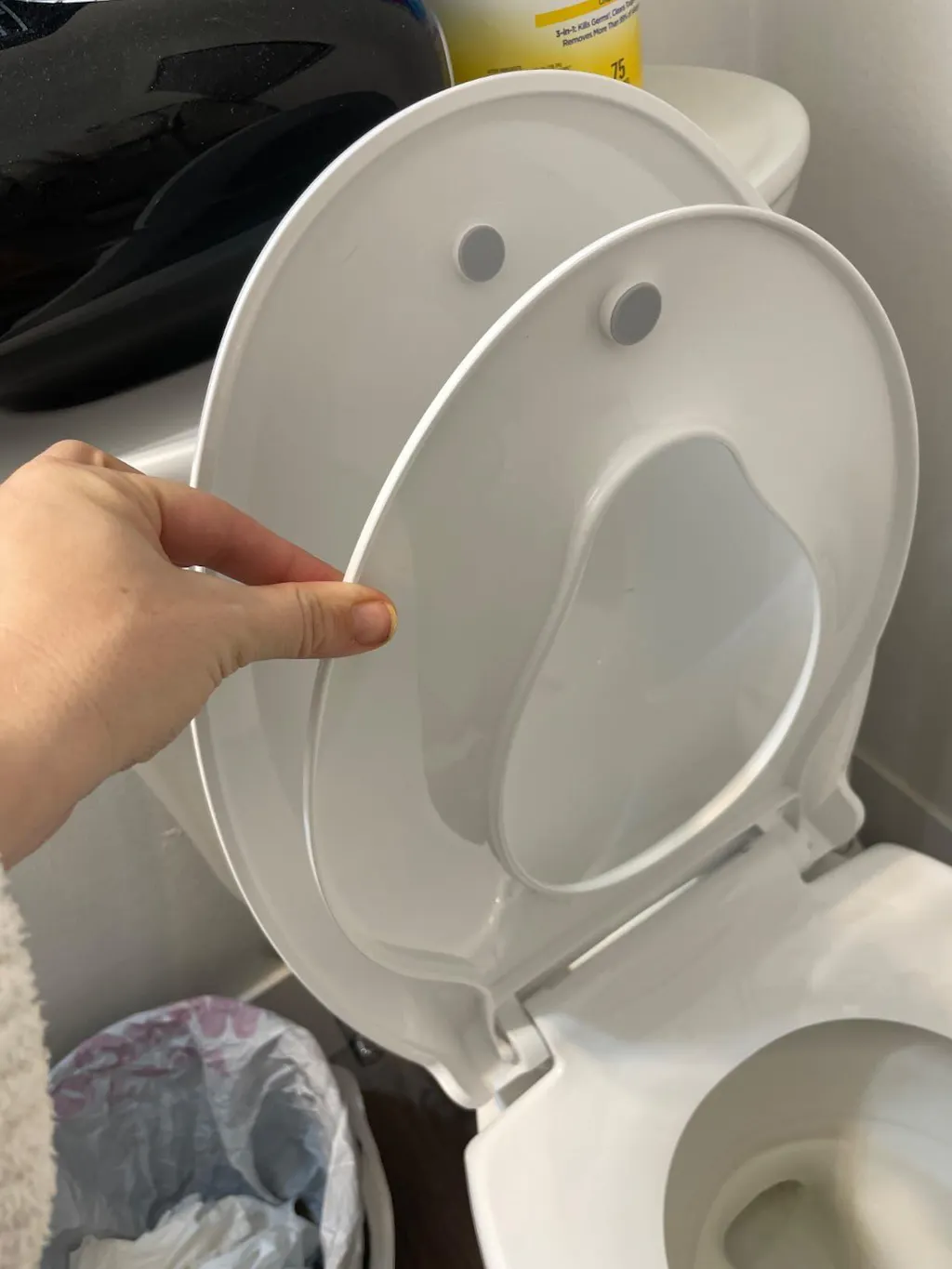 The toilet lid is made of high-quality polypropylene, which has a good carrying capacity and can carry more than 300 kg.
