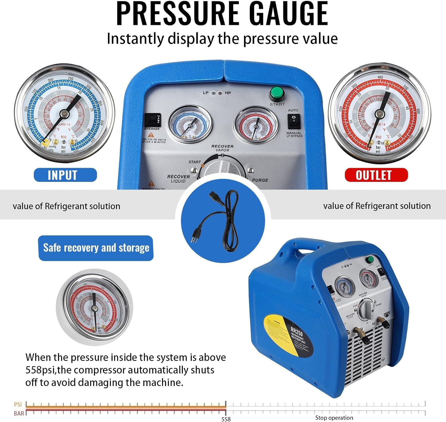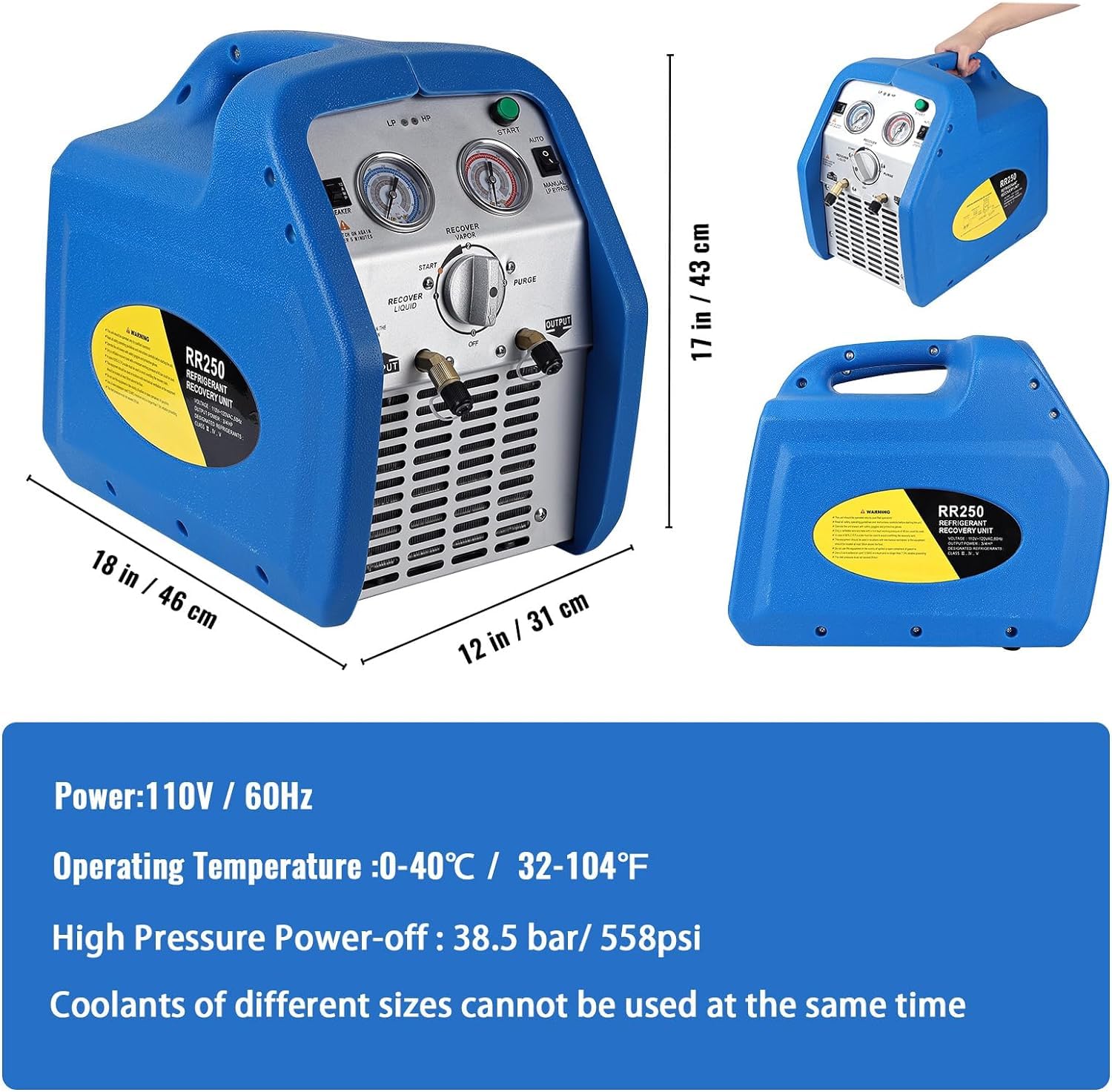 - [Efficient Operation]: Maximize your productivity with this high-efficiency recovery unit. Its powerful performance ensures quick and effective recovery of both vapor and liquid refrigerants, saving you time and effort on every job.