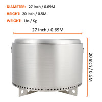 Garvee 27" Portable Smokeless Fire Pit with Air Switch - Stainless Steel, Fixed Stand, Handle, Stove Hook & Ash Pan for Camping, Backyard, Patio