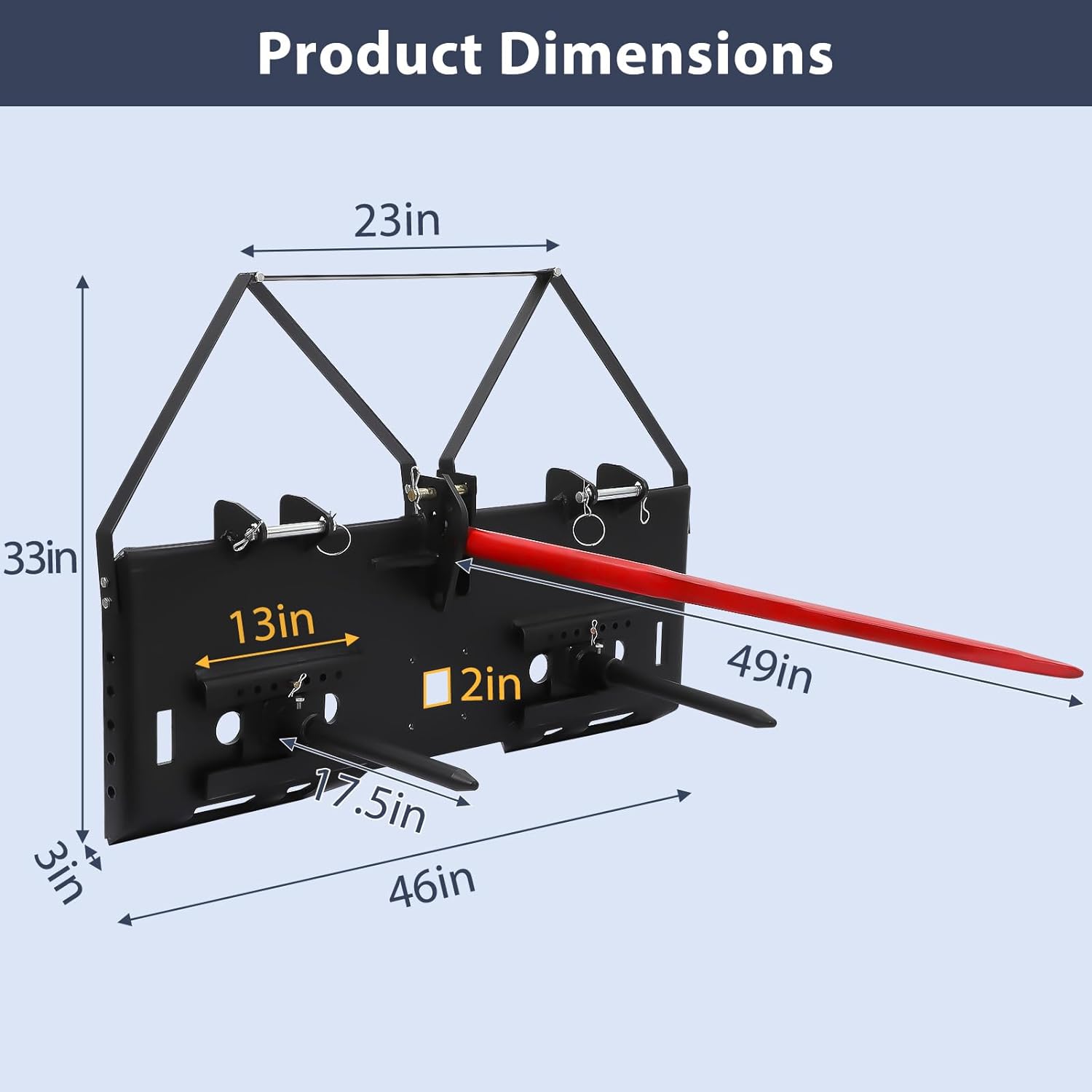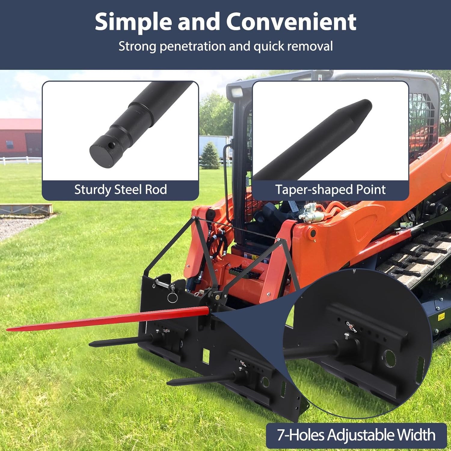 Upgrade your hay handling process with the GARVEE 17-inch Hay Bale Spear and experience improved efficiency, reduced labor, and enhanced productivity on your farm!