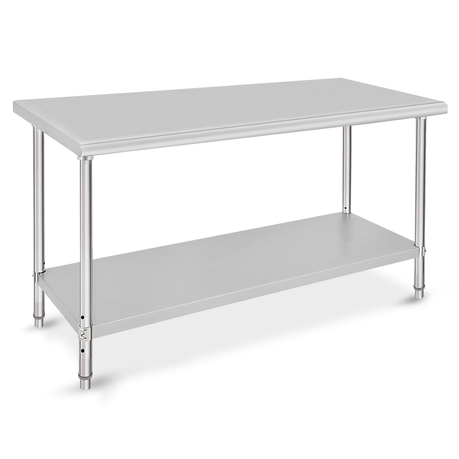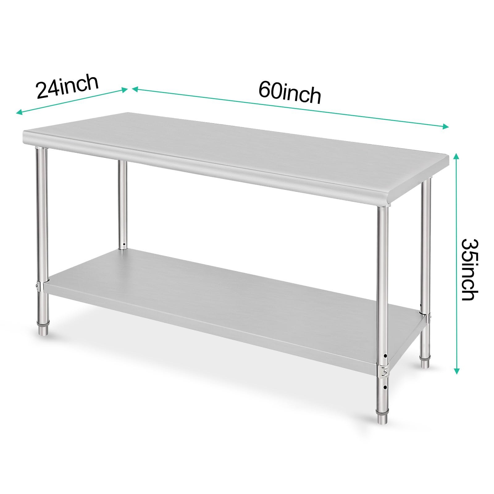Garvee 60"L x 24"W x 35"H Stainless Steel Worktable, Heavy Duty with Undershelf, Ideal for Food Prep, Kitchen, Restaurant, Garage, Commercial Use, Silver
