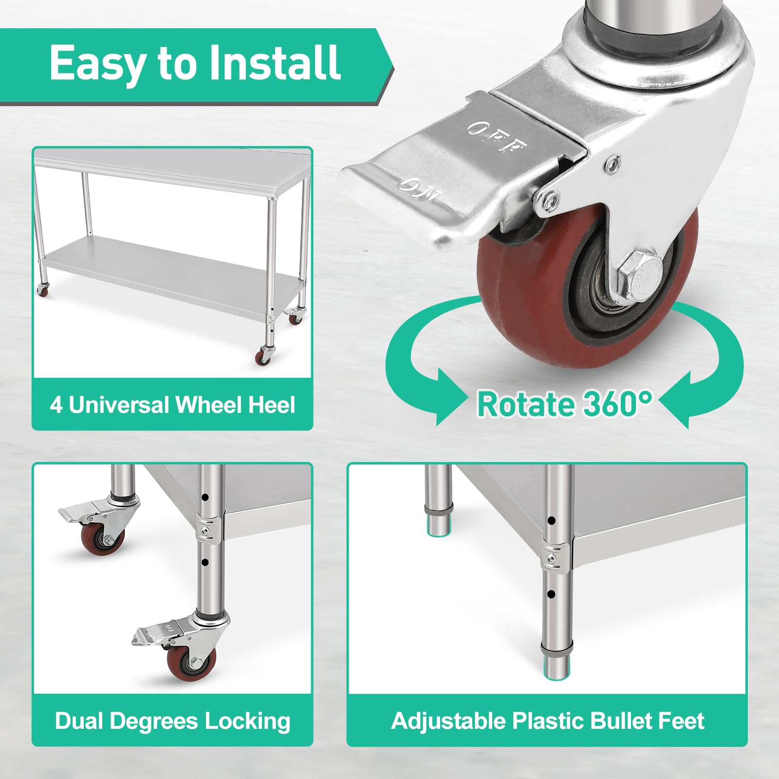 Elevate your workspace with our heavy-duty 60x24 inch stainless steel worktable. Perfect for commercial kitchens, restaurants, or home use, this table combines durability with professional-grade functionality.