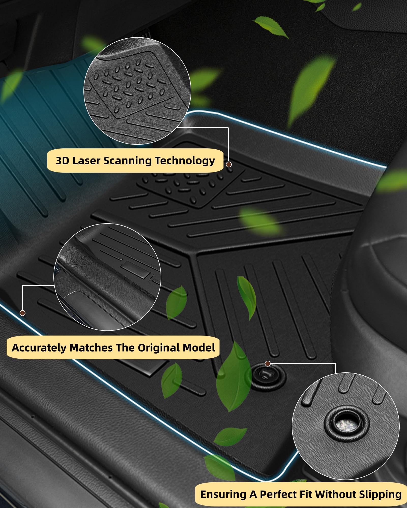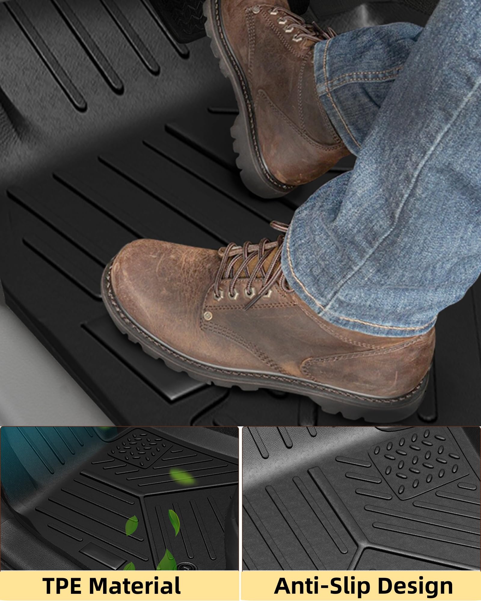 Our floor mats are custom designed to fit Toyota Tacoma Double Cab perfectly, ensuring coverage and protection for the first and second rows. Made of high-quality TPE material, durable, flexible and wear-resistant. Contains no harmful materials and provides long-lasting and safe protection in any condition.