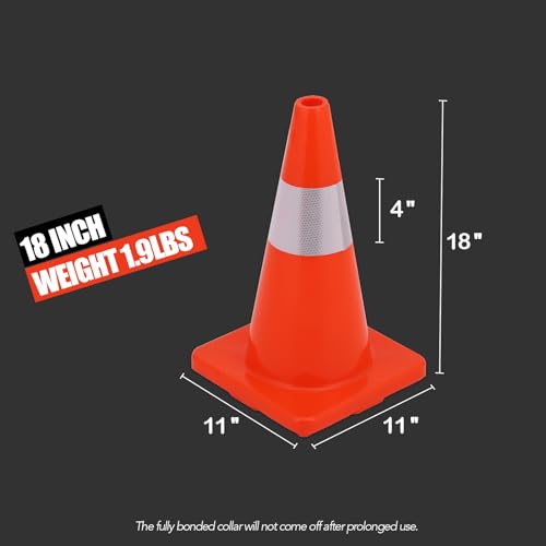 GARVEE Traffic Safety Cones, PVC Orange Cones with Reflective Collars, Plastic Cones for Parking Lot, Traffic Control, Driving Training
