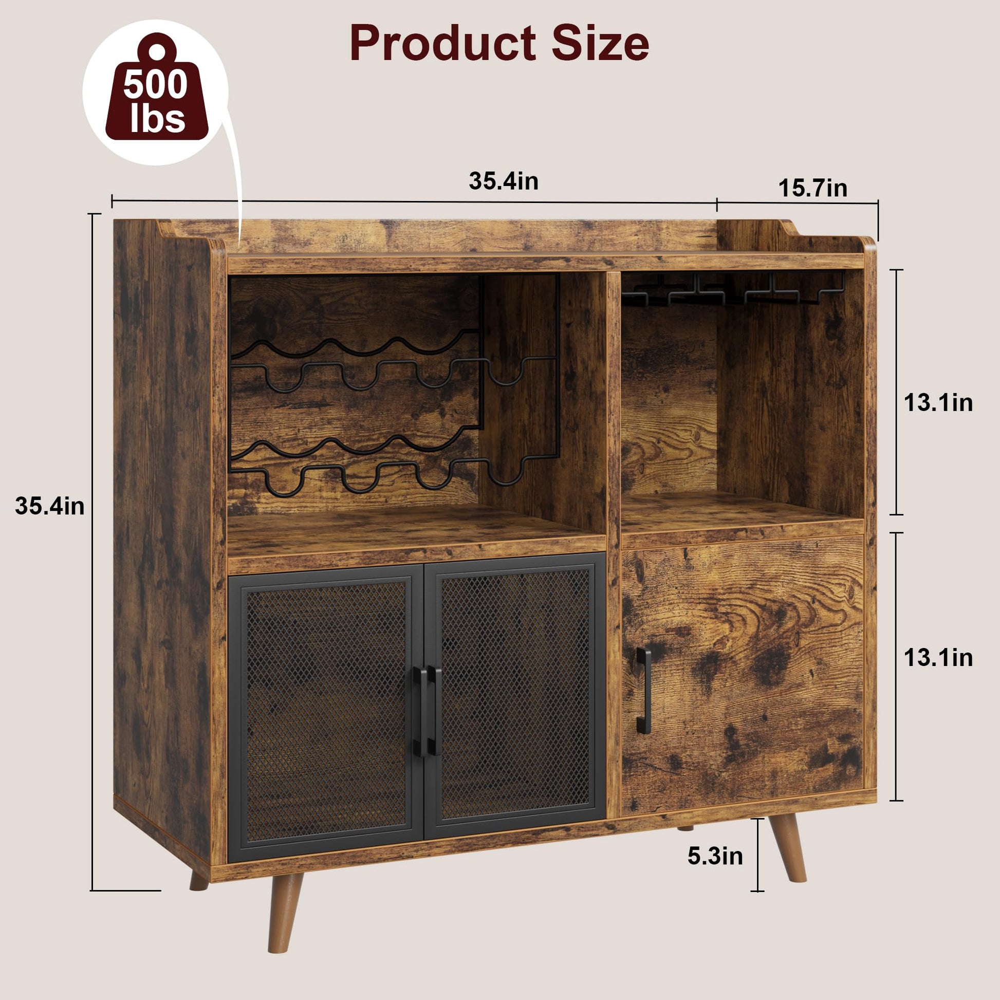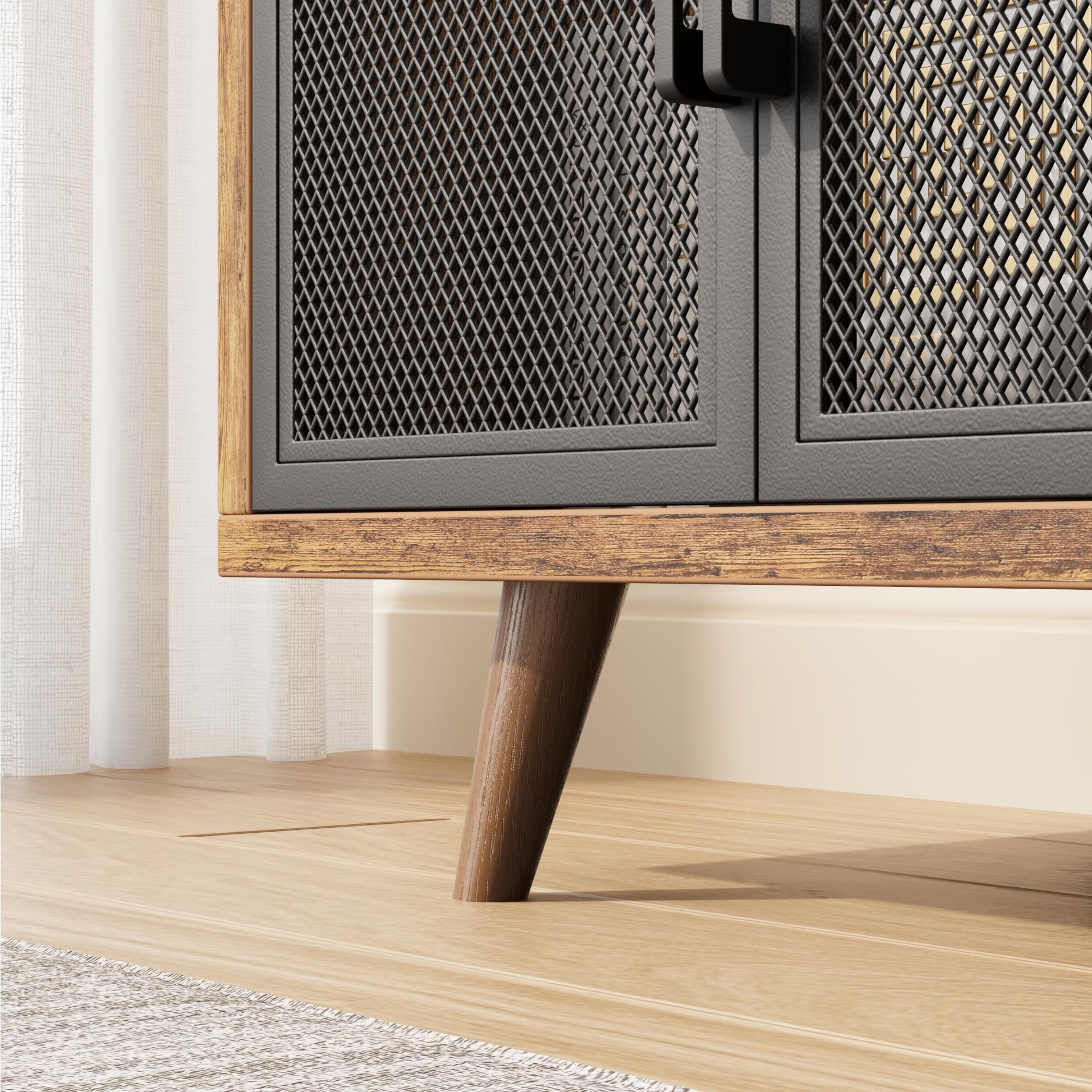 Our GARVEE Buffet Storage Cabinet combines functionality with rustic elegance. The sturdy metal frame and thickened wood panel can support up to 500 lbs, ensuring durability and reliability. The spacious tabletop provides ample space for your kitchen appliances and decor, while the mesh doors add a touch of vintage charm.