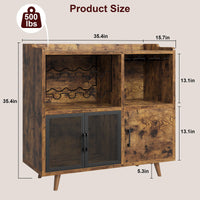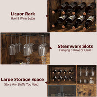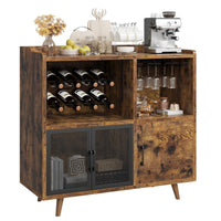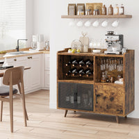 Garvee Vintage Wine Bar Cabinet, Liquor Coffee Bar Cabinet with Wine Rack and Glass Hanger, Sturdy Buffet Storage Cabinet for Kitchen Dining Living Room