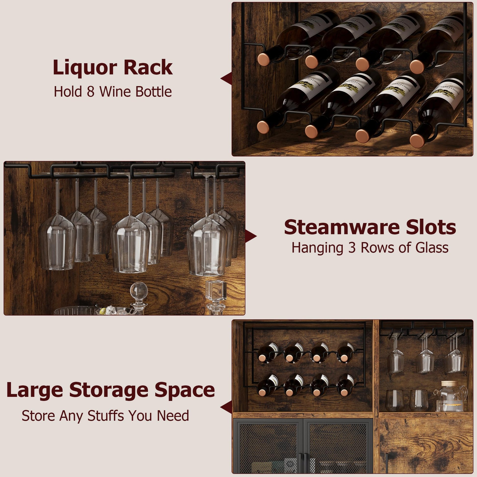 Keep your wine glasses organized and easily accessible with dedicated stemware slots, eliminating clutter and maintaining a tidy space.