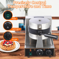 - Precise Control: Independent temperature selector (122°F to 482°F) and timing controller (1 to 5 minutes) for perfect waffles every time.