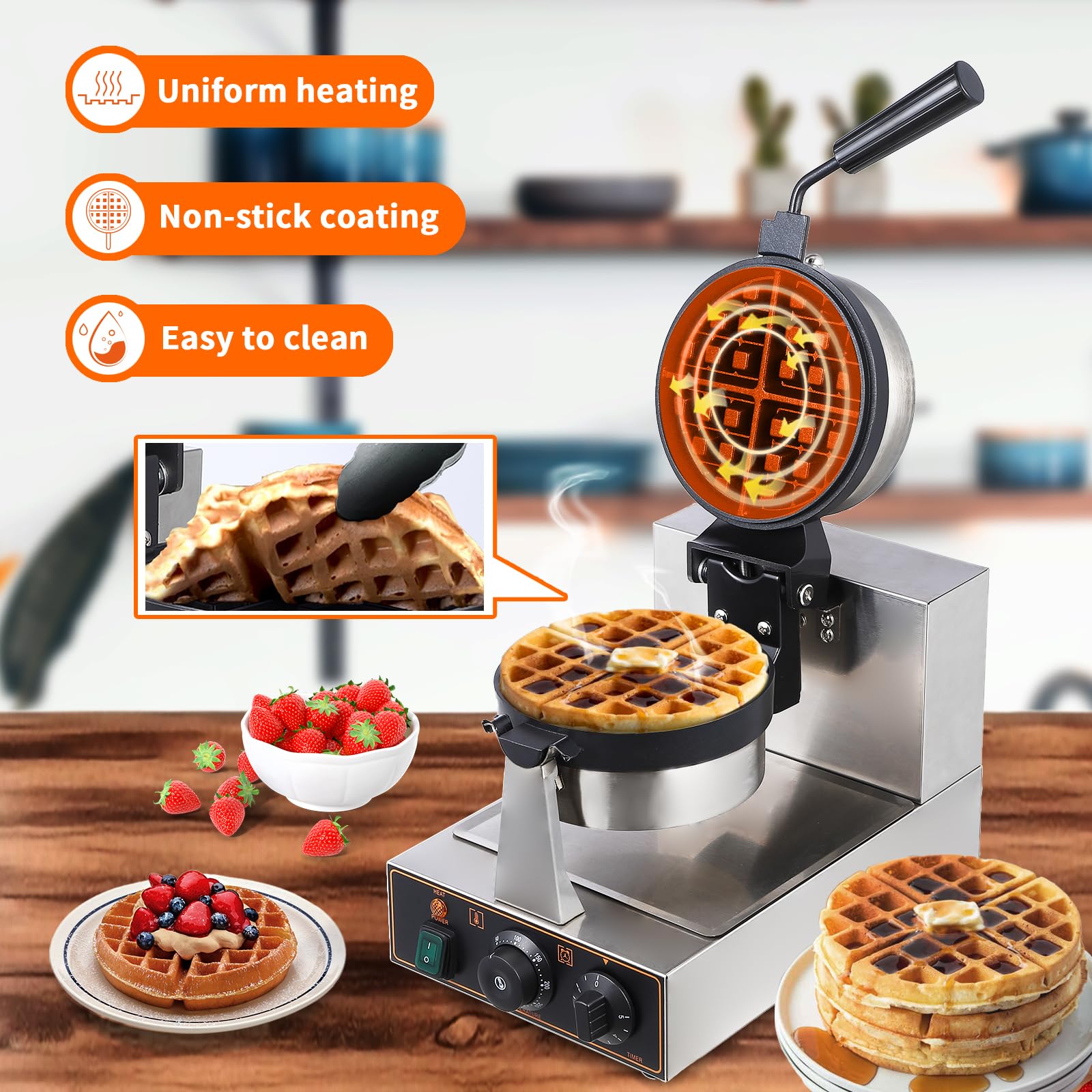 Garvee 360° Rotating Electric Waffle Making Machine | 50-250℃ Non-Stick Flip Waffle Iron Waffle Maker Time Control Temperature Adjustable, 110V 1200W