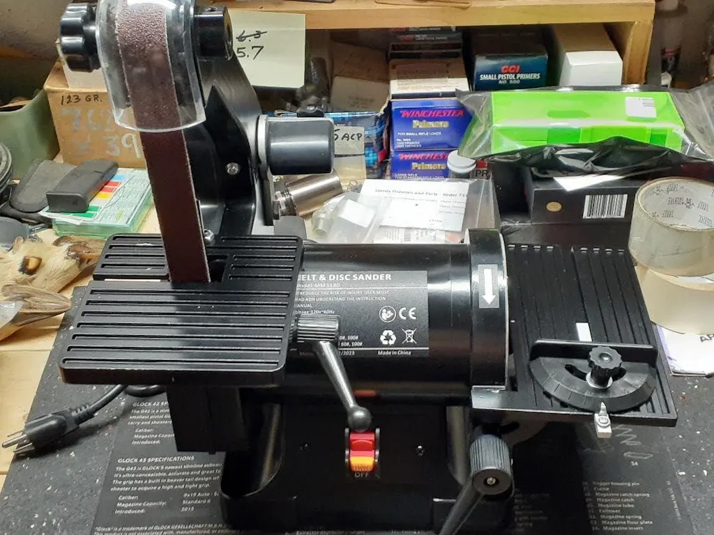 Equipped with 1x30-inch belts and 5-inch discs for various sanding applications.